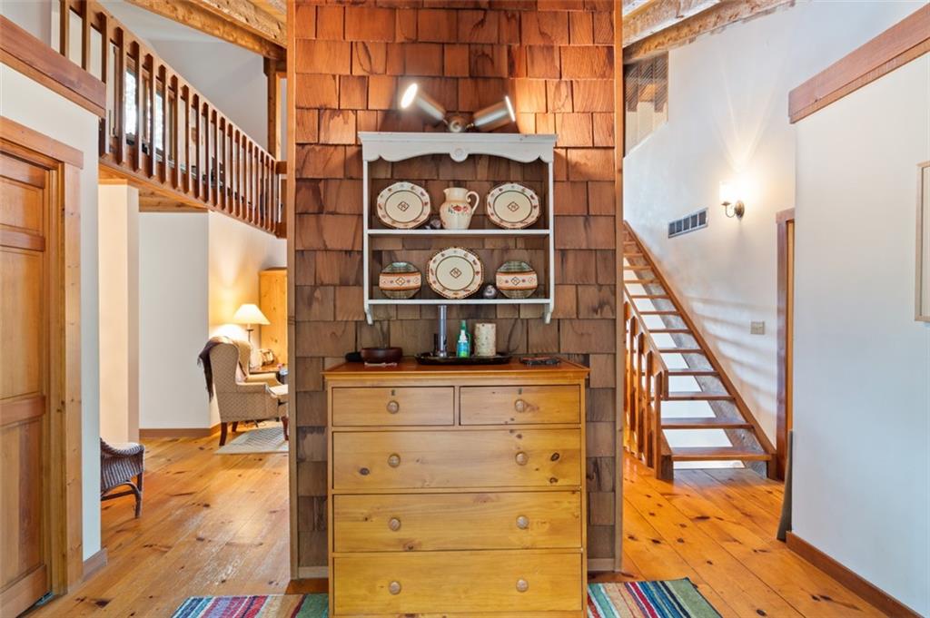 Charming 4 B/R & 4 Bath design cabin located on an estate size 3.42 Acre corner lot with year round mountain views from every vantage point. Featuring wide plank hardwood flooring, casement windows, high volume cathedral ceilings with wood plank and exposed wood beams throughout the main and upper level. Master B/R suite is oversize with a separate jacuzzi tub and shower, plus a separate guest bedroom with full bath access also located on the main level, with separate dining room, and fireplace in the great room. Bedroom with full bath access and loft located upstairs, and the 4th b/r suite with attached bonus room and family room with billiard table, plus separate workshop and storage area on the terrace level. Enjoy the outdoor space from an expansive screen porch off the kitchen, a covered porch off the master b/r, the open deck on the main level, or from the lower covered deck that runs the length of the home and then some. This corner lot property enjoys a circular driveway for easy in and out access, and centrally located on a quiet street in a tranquil setting, and yet just 5 minutes from the Amenities in Wolfscratch Village and the Marina. Come and enjoy indoor or outdoor living at it's finest!